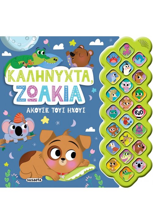 Νυχτώνει και τα ζωάκια ετοιμάζονται για ύπνο! Έλα κι εσύ σε μια χαρούμενη βόλτα για να τα γνωρίσεις από κοντά, να παρατηρήσεις τις πλούσιες εικόνες, να βρεις αντικείμενα και φυσικά… να ακούσεις πώς κάνουν οι τετράποδοι φίλοι μας!