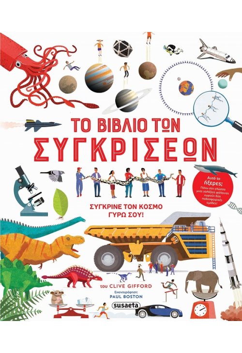 Από το μικρό στο μεγάλο, από το γρήγορο στο αργό, από το ελαφρύ στο βαρύ, από το ψηλό στο χαμηλό, αυτό το βιβλίο περιέχει εκατοντάδες εκπληκτικές συγκρίσεις και συναρπαστικά στοιχεία που θα σε κάνουν να δεις τον κόσμο με άλλα μάτια!