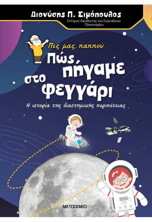 Με απλό και κατανοητό τρόπο ο γνωστός Έλληνας αστροφυσικός Διονύσης Σιμόπουλος (Επίτιμος διευθυντής του Ευγενίδειου Πλανηταρίου) βοηθάει τα παιδιά να παρακολουθήσουν την προσπάθεια του ανθρώπου για την κατάκτηση του διαστήματος: την εξέλιξη των πτητικών μηχανών, τις διαστημικές αποστολές, τον πρώτο άνθρωπο στη Σελήνη, την ομορφιά του φυσικού δορυφόρου της Γης και τον μελλοντικό αποικισμό του.