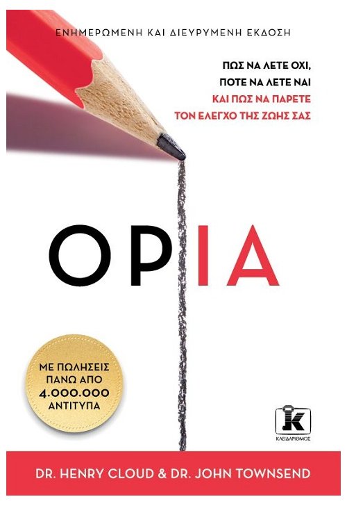 Σε αυτό το βραβευμένο μπεστ σέλερ των New York Times, οι δρ Χένρι Κλάουντ και Τζον Τάουνσεντ εξηγούν πώς να θέσουμε υγιή όρια στους γονείς, στον/στη σύζυγο, στα παιδιά, στους φίλους, στους συναδέλφους μας, στα μέσα κοινωνικής δικτύωσης, ακόμα και στον ίδιο μας τον εαυτό. Τα όρια είναι σύνορα της προσωπικής μας ιδιοκτησίας και επηρεάζουν κάθε τομέα της ζωής μας – σωματικό, νοητικό, συναισθηματικό και ψυχικό. Αναλύοντας τους δέκα νόμους των ορίων, οι συγγραφείς εξηγούν πώς να επαναφέρουμε την ισορροπία στις σχέσεις μας. Το να θέτουμε όρια μας βοηθά να κατακτήσουμε την ελευθερία και μια ζωή γεμάτη δοτικότητα και πληρότητα.
