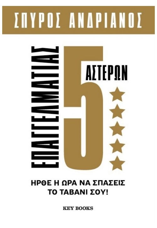 Και κάπως έτσι ξεκινά ακόμα μία μέρα: με μια πίκρα που δεν φεύγει ούτε με τον τρίτο καφέ. Αν υπήρχε ένα κουμπί που θα τα άλλαζε όλα και θα σου πρόσφερε όσα θέλεις, χρειάζεσαι και αξίζεις θα το πατούσες; Θα τολμούσες την επαγγελματική μεταμόρφωση που θα σε εκτόξευε; Το Επαγγελματίας 5 Αστέρων είναι εδώ για να σε ξεβολέψει, να αλλάξεις πορεία, να σπάσεις τα «αλυσίδες» που σε βουλιάζουν. Με περισσότερα από είκοσι χρόνια δραστηριότητας στον επαγγελματικό και επιχειρηματικό κόσμο, τρεις επιχειρήσεις που τις έχτισε απ’ το μηδέν και χιλιάδες ανθρώπους που τον εμπιστεύονται για να εξελιχθούν επαγγελματικά, ο Σπύρος Ανδριανός έρχεται να προσφέρει έναν πρακτικό και πλήρως εφαρμόσιμο οδηγό επαγγελματικής επιτυχίας. Μέσα από ένα καινοτόμο πλαίσιο πέντε πυλώνων, θα αξιοποιήσεις τις δυνατότητές σου, θα χτίσεις μια ανθεκτική νοοτροπία ανάπτυξης και θα κυριαρχήσεις στην αγορά. Αυτό το βιβλίο είναι γραμμένο για σένα· για σένα που είσαι μισθωτός σε μια δουλειά που δεν σου αρέσει, για σένα που είσαι αυτοαπασχολούμενος και θέλεις να αγγίξεις νέες κορυφές, για σένα που είσαι επιχειρηματίας και αναζητάς αποτελεσματικές λύσεις σε φαινομενικά άλυτα προβλήματα. Είναι ειδικά σχεδιασμένο για σένα που δεν αρκείσαι σε μία συμβατική επαγγελματική ζωή, που νιώθεις την ανάγκη να εδραιωθείς και να αφήσεις το στίγμα σου στην αγορά, βιώνοντας συγχρόνως ικανοποίηση μέσα στην εργασιακή σου καθημερινότητα.