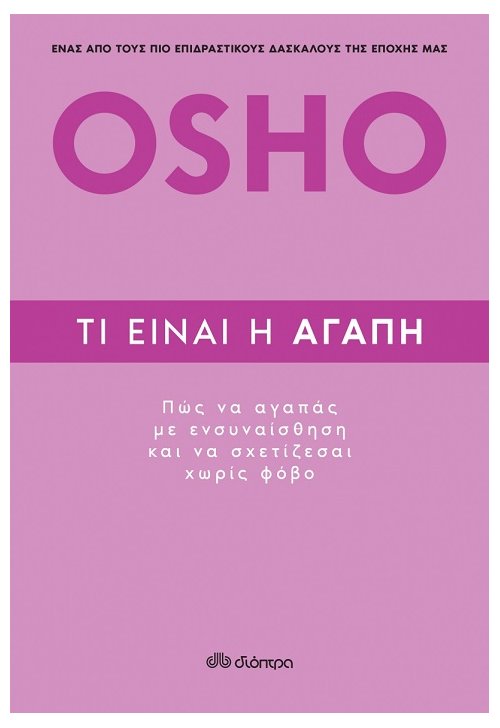 Το βιβλίο Τι Είναι η Αγάπη θα σας εμπνεύσει να αντιληφθείτε την αγάπη με έναν νέο τρόπο και να βιώσετε τη χαρά που προσφέρει η ζωή όταν τη μοιράζεσαι. Σε αυτό το εκπληκτικό πνευματικό έργο του, ο Osho, ένας από τους πιο επαναστατικούς διανοητές της εποχής μας, μας προκαλεί να αμφισβητήσουμε ό,τι γνωρίζαμε μέχρι στιγμής για την αγάπη και να ανοιχτούμε στη δυνατότητα μιας αγάπης φυσικής και ελεύθερης από κάθε κτητικότητα και ζήλια, η οποία έρχεται για να μας ολοκληρώσει.