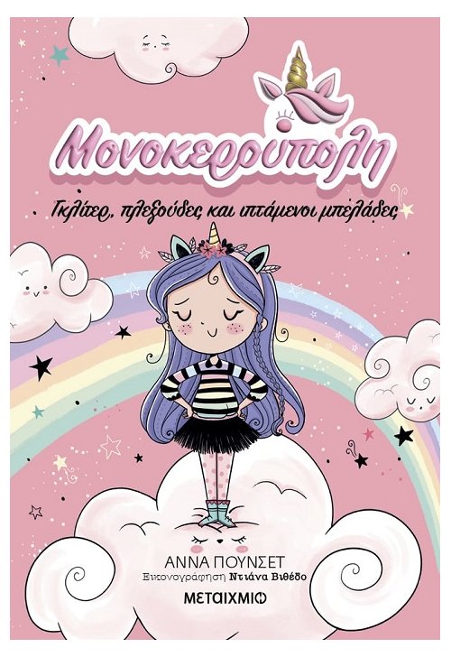 Γεια σου! Με λένε Κλαυδία και μόλις μετακόμισα στη Μονοκερούπολη, το πιο μαγικό μέρος του κόσμου! Εδώ οι μονόκεροι πετάνε, και στο σχολείο κάνουμε μάθημα Μαγικών Φίλτρων. Για Μαθηματικά ούτε λέξη! Εντάξει, η Μονοκερούπολη είναι απίθανη, αλλά όχι και τέλεια. Στο σχολείο Ανώτερης Μαγείας κανένας δε γλιτώνει τις εξετάσεις. Αύριο κιόλας έχω τη δοκιμασία πτήσης με μονόκερο! Θα καταφέρω να μάθω να πετάω σε χρόνο μηδέν; Μια νέα σειρά για τους λάτρεις των μονόκερων!